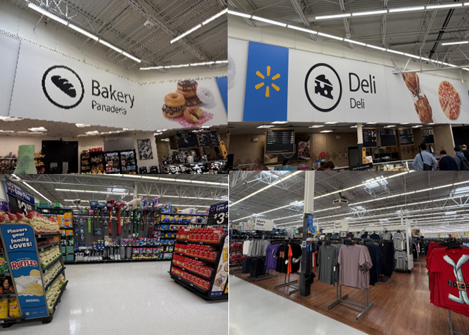 Walmartは徹底した低価格戦略を軸に、広い通路、倉庫型に近いレイアウト、多数のセルフレジなどを通じて、効率よく買い物を終えられる環境を整えていました。店内は機能性を優先した構成で、「必要なものを短時間で購入したい」というニーズに応える設計になっており、低価格×大量販売×効率性というブランドイメージが売場全体から伝わってきました。