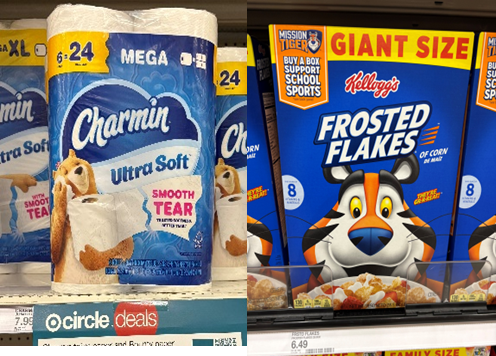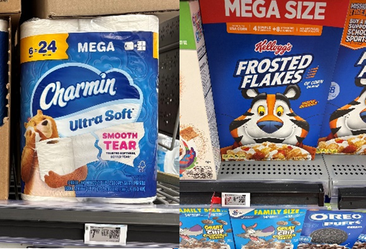 価格については、トイレットペーパーが$7.97、コーンフレークが割引価格$5.64となっており、NB(ナショナルブランド)商品全体でも低価格な値段設定になっていました。